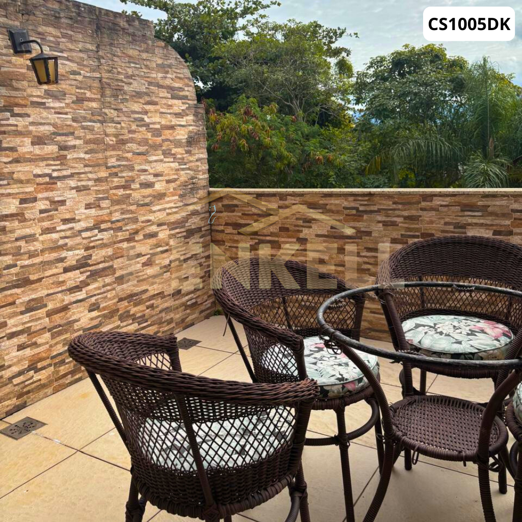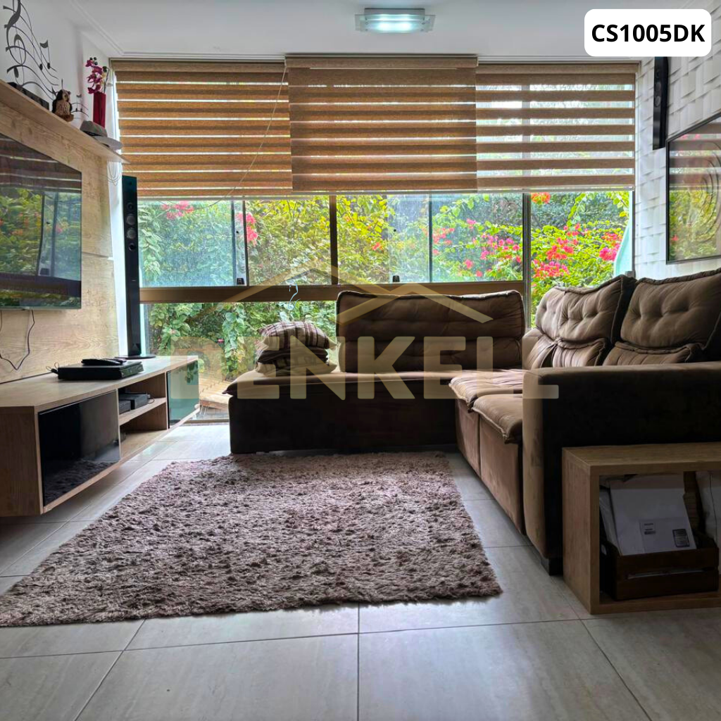 2º Piso: quarto com sacada + armário, banheiro social, 1 suíte ampla com extensão para varanda fechada com cortina de vidro.