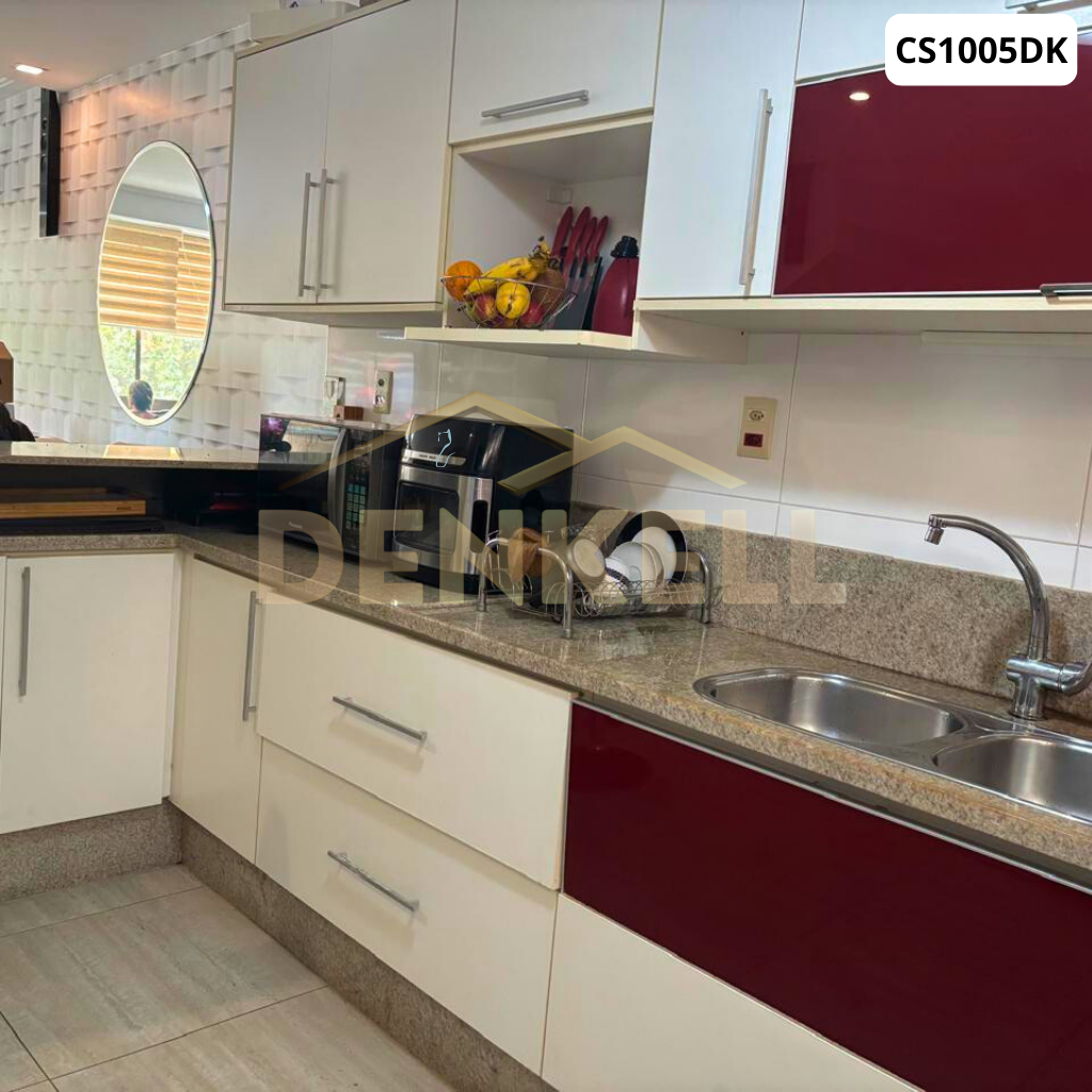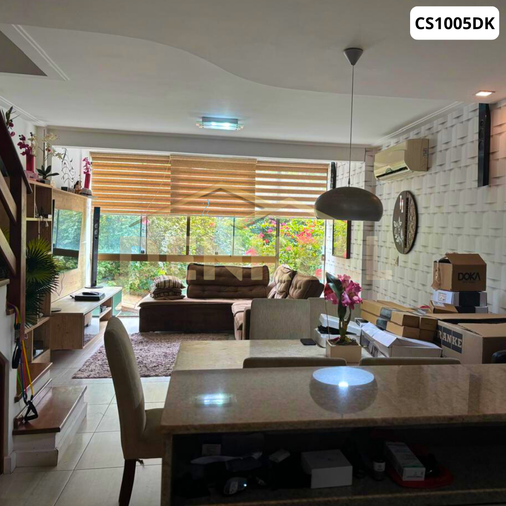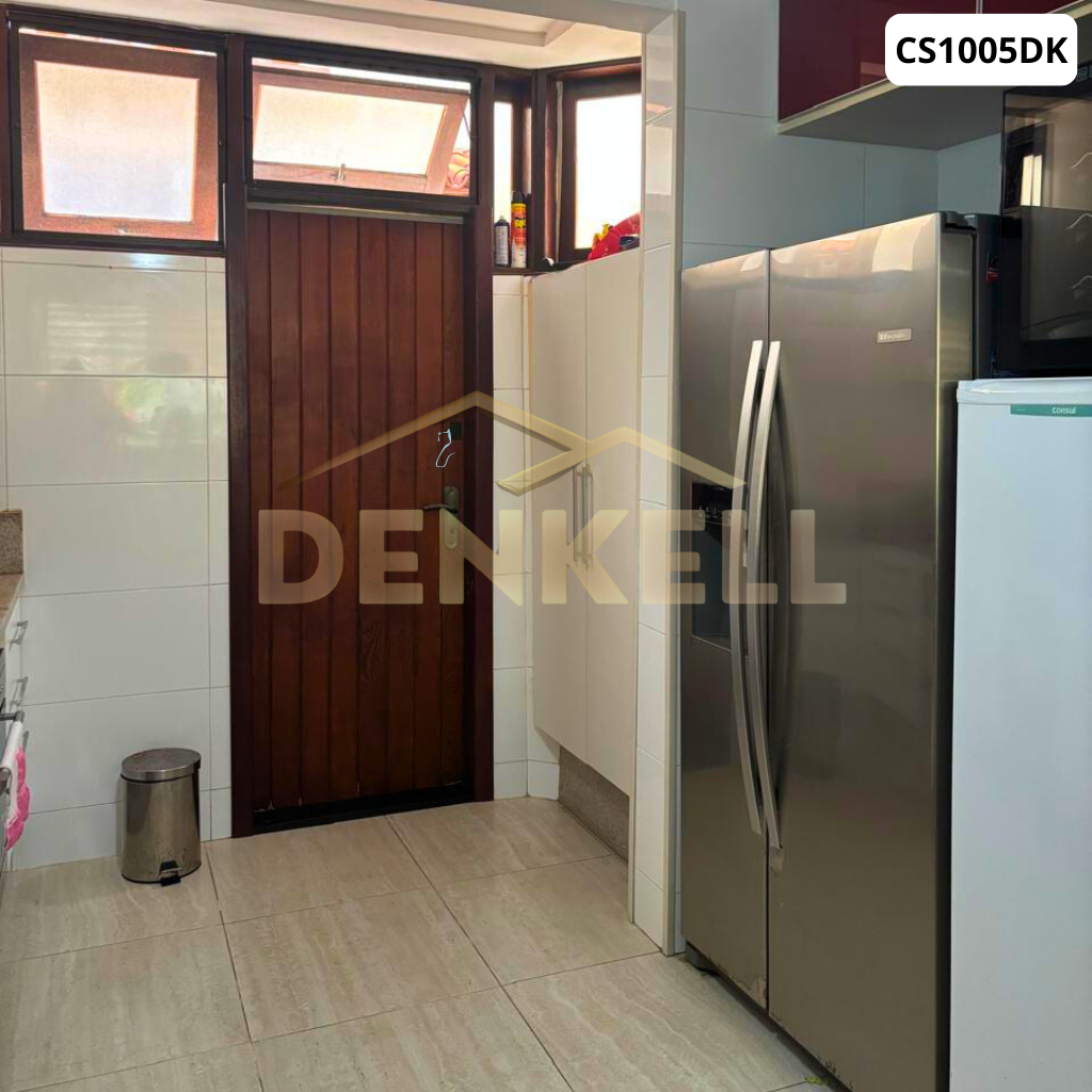 1º Piso: ampla cozinha americana, sala ampla com janelão de vidro, área externa abaixo com churrasqueira + ducha e um lavabo.